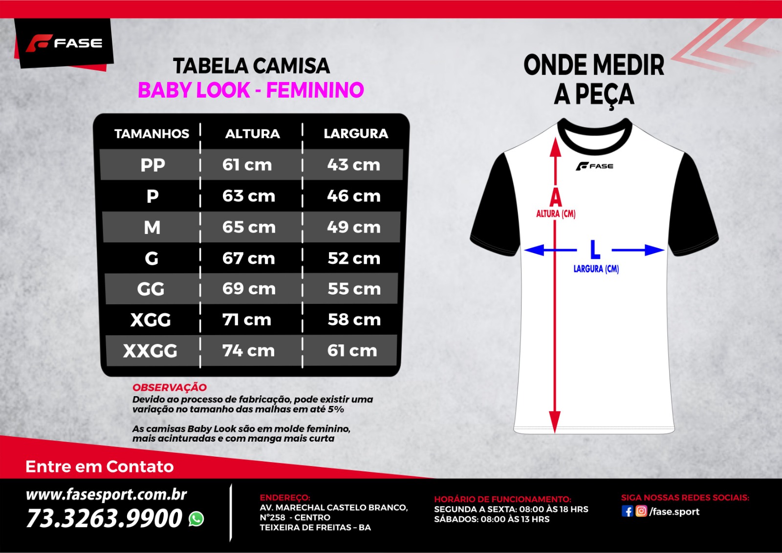 TABELA de MEDIDAS: