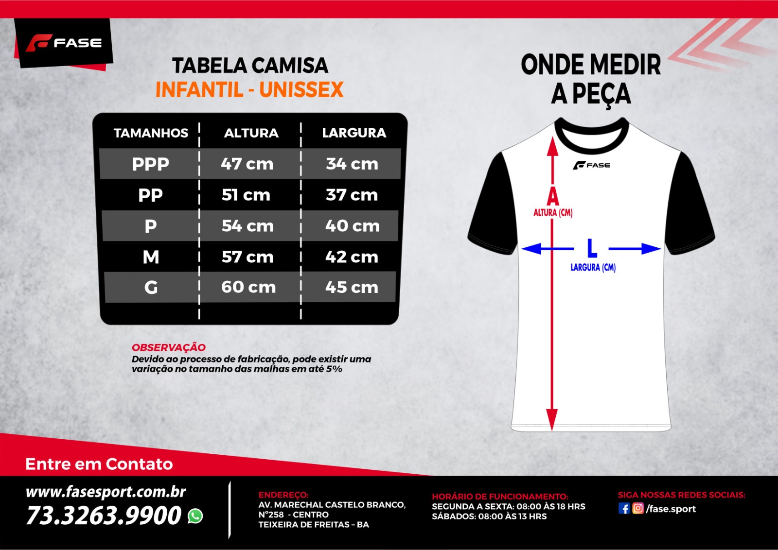 Confira as medidas de tamanhos antes de concluir a compra. Na dúvida entre tamanhos, escolha sempre o maior para evitar que fique apertada.